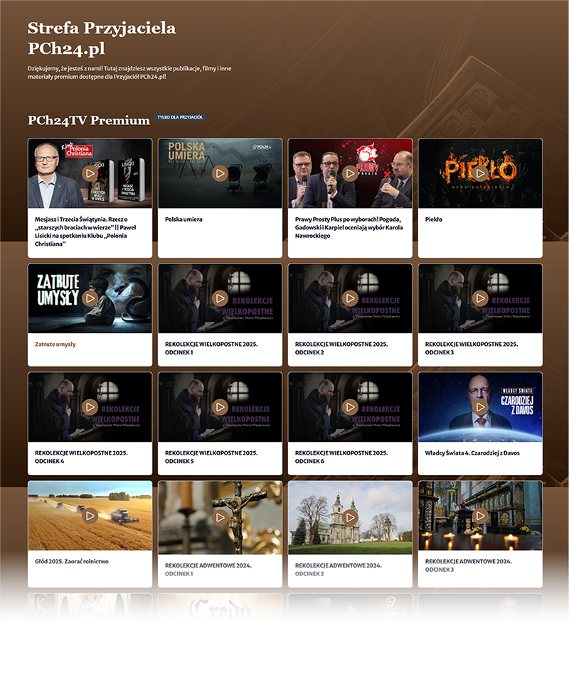 Klub Przyjaciół PCh24.pl to wspólnota stałych Darczyńców, którzy, dzięki regularnym, comiesięcznym wpłatom, gwarantują długofalowy rozwój i stabilność portalu. To Państwa zaangażowanie jest fundamentem naszej misji – obrony wartości katolickich i polskiej tożsamości w świecie cyfrowym.